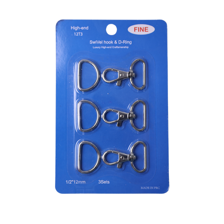 Swive Hook & D-Ring: Silver, High-End, Belts & Bag Making, 1/2"(12mm)