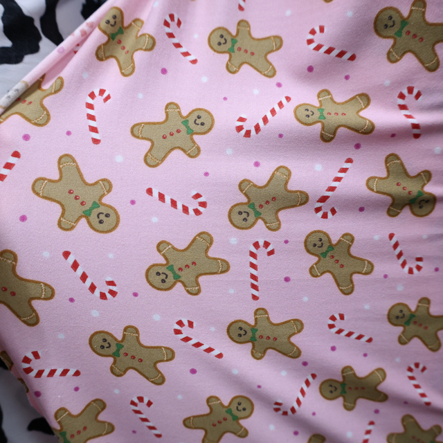 Double Brushed Jersey Knit Fabric/Gingerbread & Candy Cane Print(#IT604) - By The Yard is backordered and will ship as soon as it is back in stock.