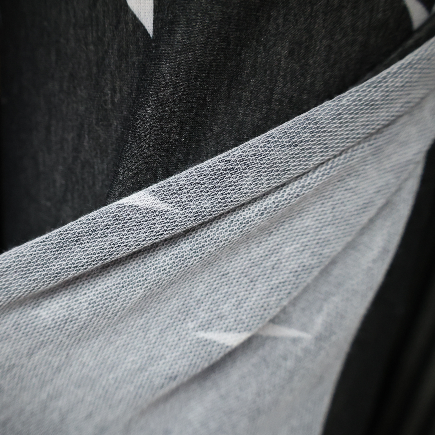 This French terry knit fabric features a soft and casual feel with a sporty lightning print on a gray heather background. The loop-back terry structure provides comfort and breathability, while the fabric also offers a slight 2-way stretch (horizontal stretch) for added ease of movement. Perfect for casual and activewear such as sweatshirts, hoodies, jogger pants, children’s wear, and loungewear.