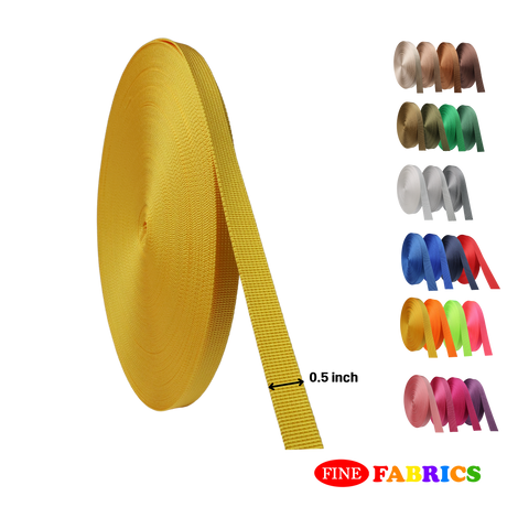 Webbing Straps: Heavy-Duty Nylon Back Strap 0.5", 25 Colors, 5/10/25/50 Yards