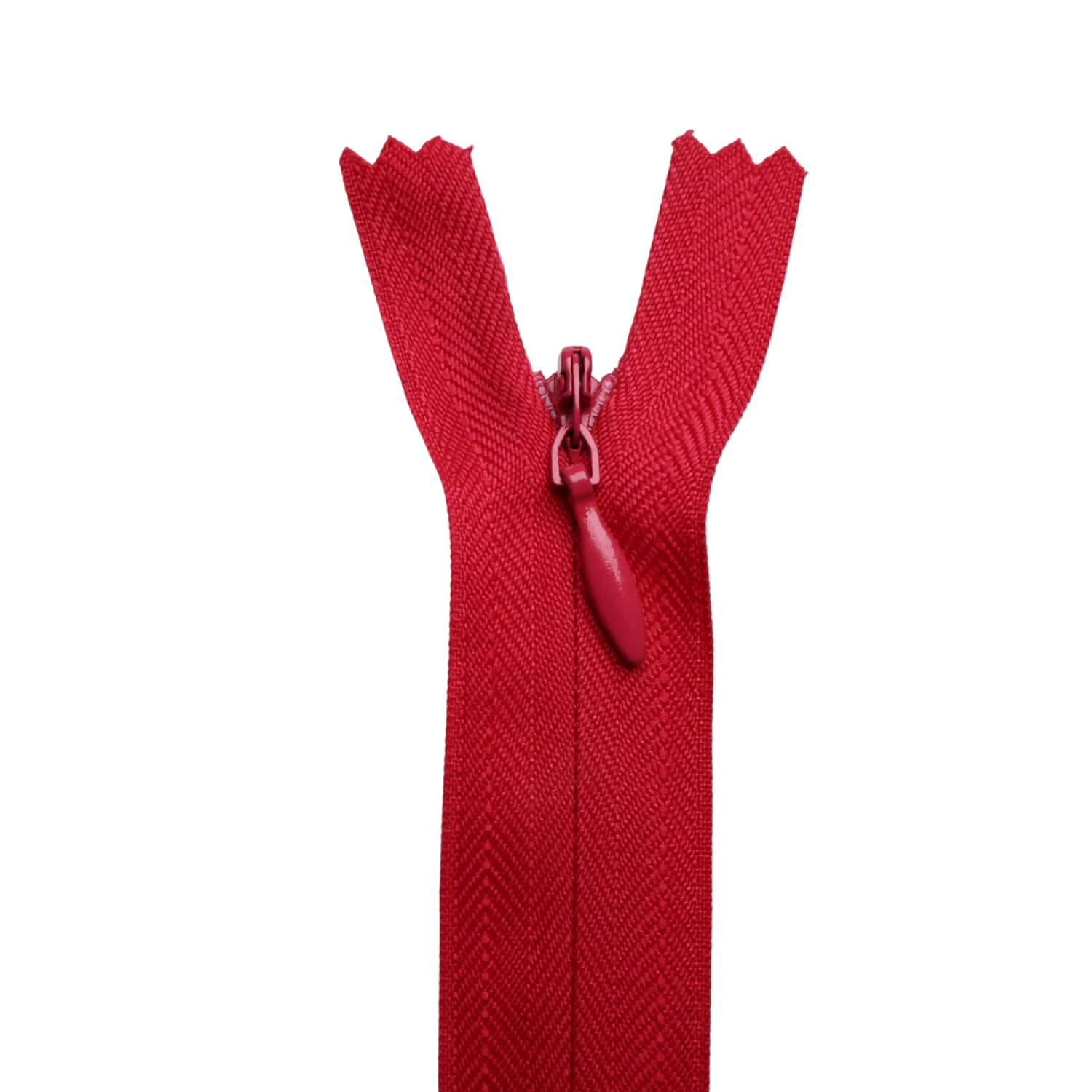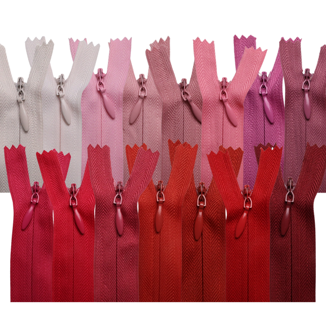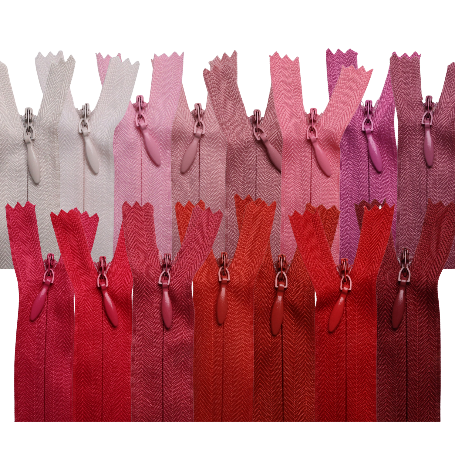 Elevate your sewing and design projects with these versatile 18" invisible zippers in fresh pink and red shades. Designed to seamlessly blend into your garments or décor, these closed-end zippers offer durability, smooth operation, and a clean, professional finish.