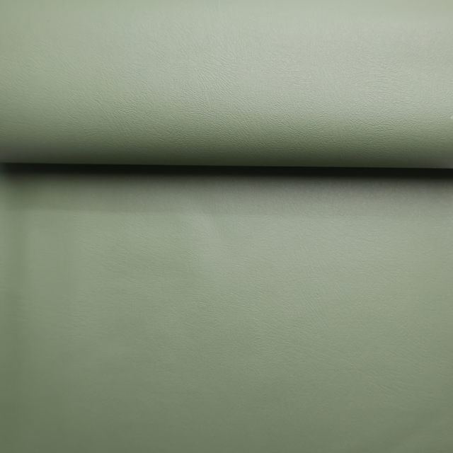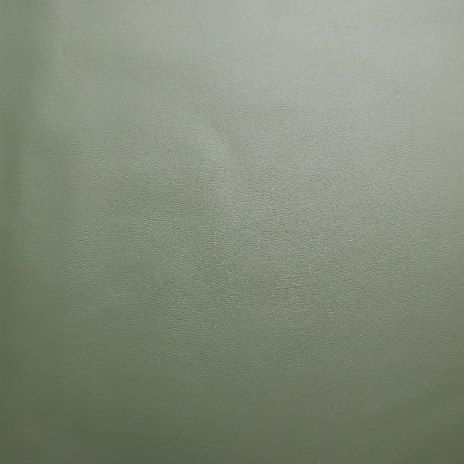 This olive green faux leather upholstery fabric has a smooth leather-like surface with a subtle grain texture. The backside is finished with a white polyester knit backing for added durability and stability. Flexible and easy to work with, this fabric is great for upholstery and decorative projects.