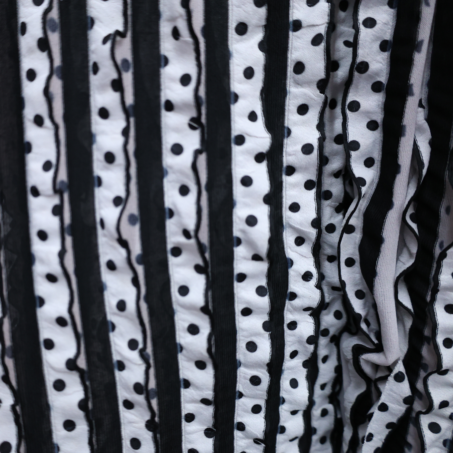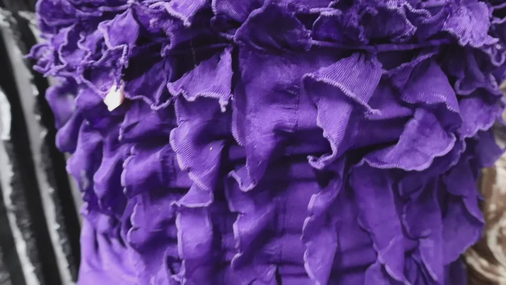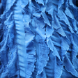 Make a bold statement with this stunning ruffle fabric featuring layered vertical frills for a dramatic and voluminous effect. Its vibrant royal blue shade adds elegance and flair to fashion and décor projects.